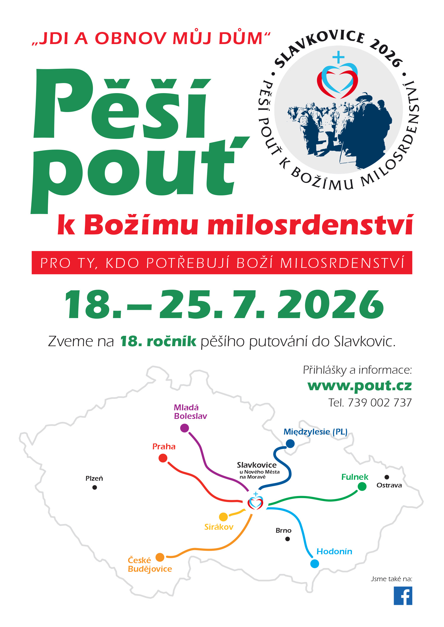 Chceš prožít výjimečné dobrodružství? Chceš objevit církev a najít v ní své místo? Toužíš zakusit sílu společenství, radost ze setkání s různými lidmi a zároveň prožít neobyčejný čas duchovní obnovy „na cestě“? Přidej se k pěší pouti k Božímu milosrdenství!